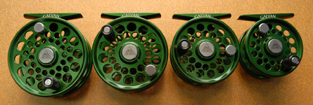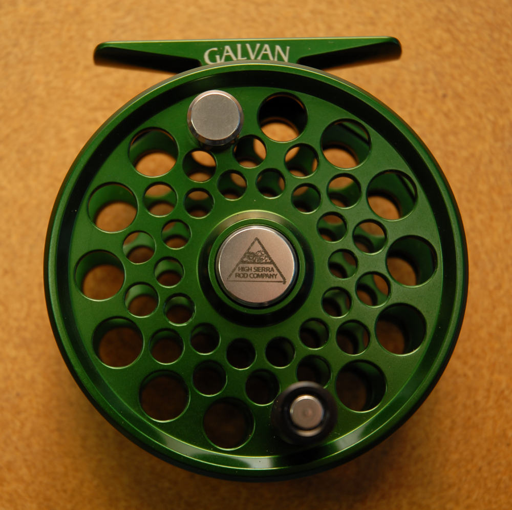 We are proud to offer a Custom High Sierra version of the famous Galvan traditional Standard fly reel. The Standard fly reel is for the angler who prefers the classic styling and solid performance of a standard arbor reel. This moderately priced, high-quality reel is available in sizes for 2 through 6 weight rods and is salt water safe. These reels carry a lifetime warranty to the original owner. The silent retrieve and quiet, pleasing outgoing click will make you feel like part of the river; no harsh clicking or clacking to echo off the canyon walls here. Changing retrieve direction on the Galvan is as easy as flipping over the clutch. This light, smooth, simply elegant reel has to be seen and felt to be appreciated. The Drag system is made from stainless steel and Ertalyte (a state-of-the-art, heat and wear-resistant thermoplastic unlike anything else on the reel market.) The Ertalyte disc is used as a brake mechanism. It is sandwiched between stainless steel surfaces to cause smooth, constant drag pressure in any setting. The spool is riding on two stainless steel ball-bearings to insure smoothness as the fish takes line. The spool has two pins on the bottom that drop into the stainless steel ring. Turning the spool one way will allow the spring inside the stainless steel ring (clutch) to turn freely; the other way will engage the drag. It is a simple design, but very effective. The Standard and Open Back reels utilize the same drag system. |