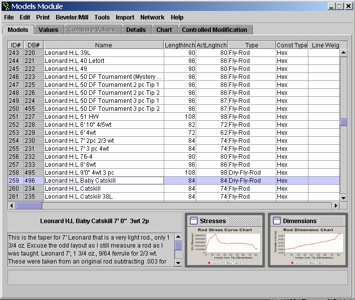 Modules are applications, each providing a distinct function. Four Modules are supplied: Customers, Vendors, Rods and Models. Optional modules may be downloaded and installed to provide additional functionality. The Customer and Vendors modules are self explanatory. Customers buy your rods, and you buy supplies from Vendors. The Customers are your customers, and therefore cannot be shared.