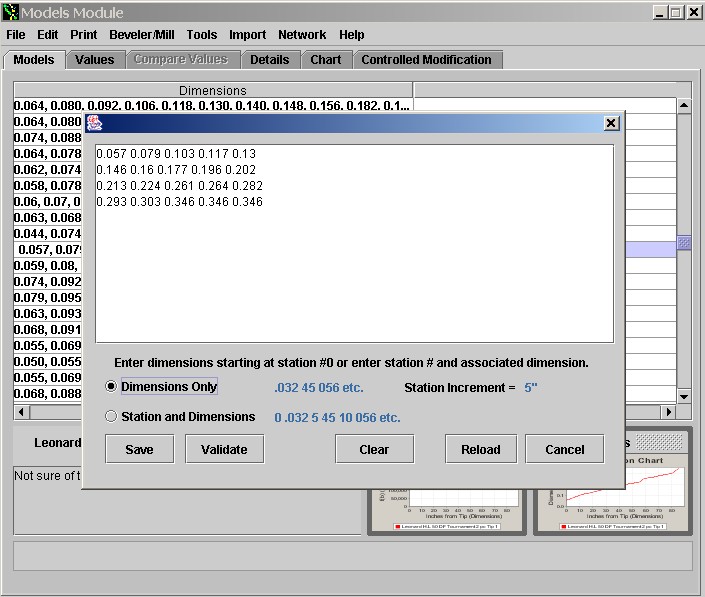You can enter or edit Model taper dimensions in two ways: using the station # and the dimension or just the dimension.  If you chose the latter, the program will assume that you are entering the dimension values in sequence starting with station #0 and that all values will be entered.  If you chose the former, you need enter as few as 2 station # / dimension pairs and the program will calculate the missing values (you should always validate the generated results).