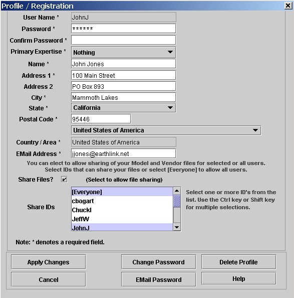 When you register you pick a unique user name. This is the name that you will be known as so pick a meaningful name. You may also pick a primary expertise. This primary expertise can be selected by other Rodmakers wanting help or to chat about a related issue. Your current email address should be maintained as various functions rely on it (such as password reminders).